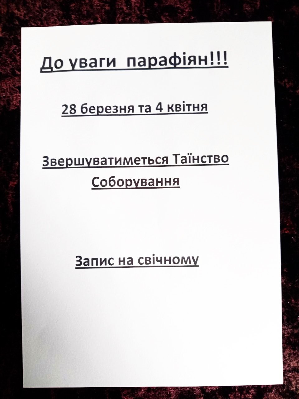 ДО УВАГИ ПАРАФІЯН